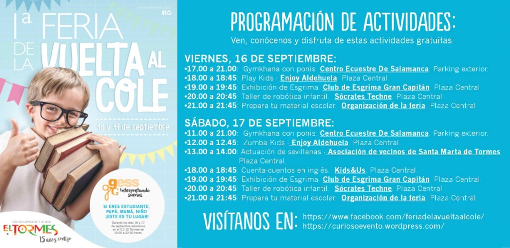 ¡RECUERDA! Nos vemos en la I Feria Vuelta al Cole de 10:00 a 22:00 h. los días Viernes 16 y el Sábado 17 de Septiembre, en el Centro Comercial El Tormes.