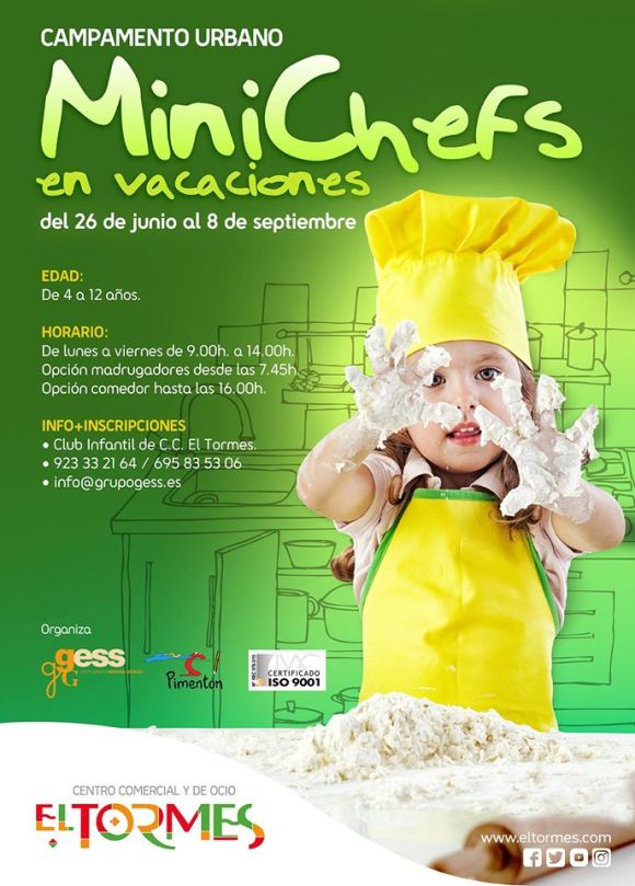 Este verano las vacaciones más espectaculares y saludables de la mano de GESS en el Centro Comercial El Tormes con el Campamento Urbano “Minichefs en Vacaciones”, dirigido a niñ@s de entre 3 y 12 de años de edad, y que se celebrará desde el día 26 de junio, hasta el 8 de septiembre de 2017.