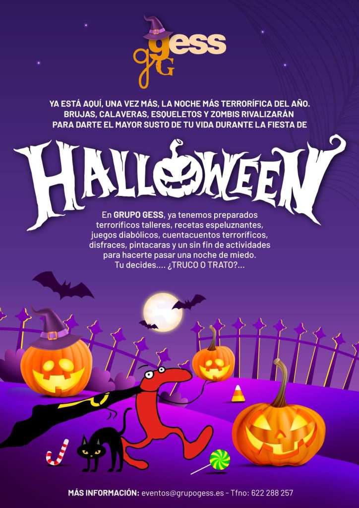 Si quieres más información sobre este plan para Halloween, contáctanos a través de nuestro correo electrónico eventos@grupogess.es, en el teléfono 622 288 257 o a través de nuestro formulario de contacto y estaremos encantadas de acompañarte en esta terrorífica experiencia.