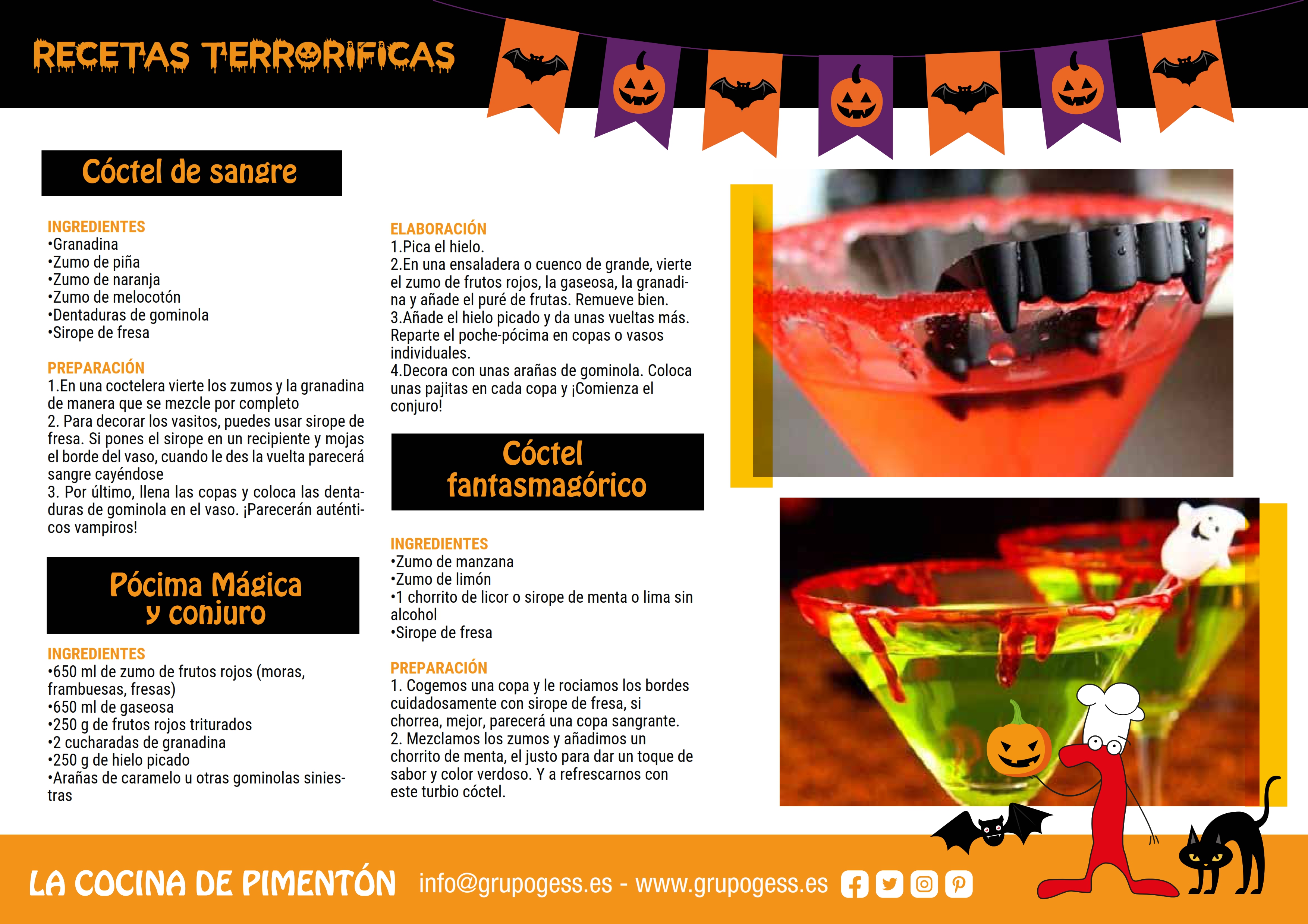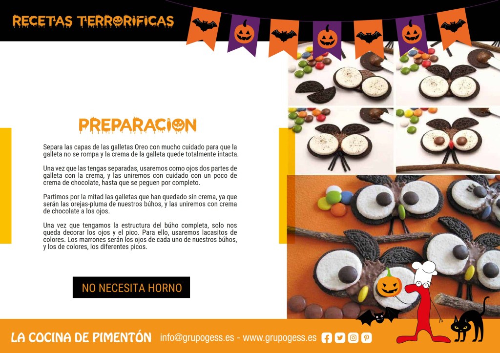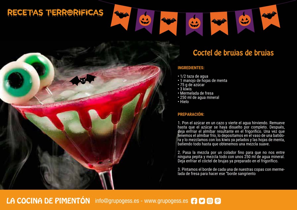 Siempre en un espacio totalmente seguro, con los utensilios adecuados para las distintas edades y bajo la supervisión de nuestras profesionales brujitas apasionadas por la cocina. Convertiremos la COCINA DE PIMENTÓN en la habitación más sanguinaria y terrorífica, nuestra mesa de trabajo se transformará en el laboratorio del más sangriento minichef gracias a estas recetas con las que grandes y pequeños nos prepararemos para disfrutar de una deliciosa Noche de Halloween.