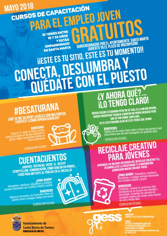 El Ayuntamiento de Santa Marta en su compromiso por el empleo de los más jóvenes, pone a su disposición una amplia oferta formativa con el objetivo de: