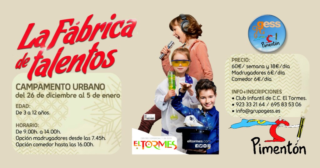 El Centro Comercial El Tormes ya tiene todo preparado para el Campamento Urbano de Navidad que se celebrará entre el 26 de diciembre y el 5 de enero y que en esta ocasión consistirá en un especial “Got Talent”. A través de diferentes actividades se propiciará que los niños descubran su talento (o talentos) de…