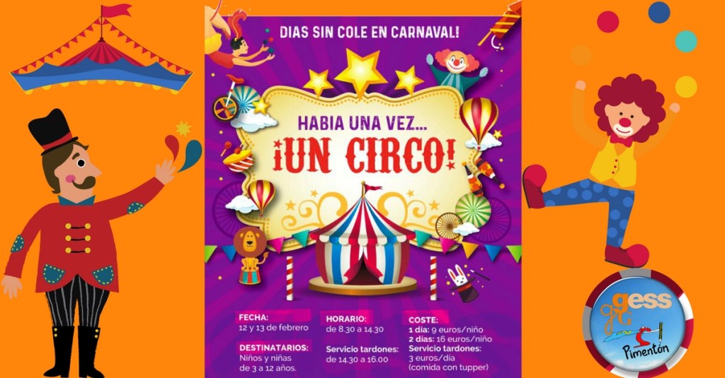 🎪¡¡HABÍA UNA VEZ… UN CIRCO!!🎪 Que alegraba siempre el corazón… Quien no recuerda esta famosa canción… ¡¡ Qué ratos más emocionantes!! 👦 👧 Desde Grupo GESS hemos preparado un completo programa de actividades para hacer de estos dos días de Carnaval una fiesta de color, magia e ilusión.