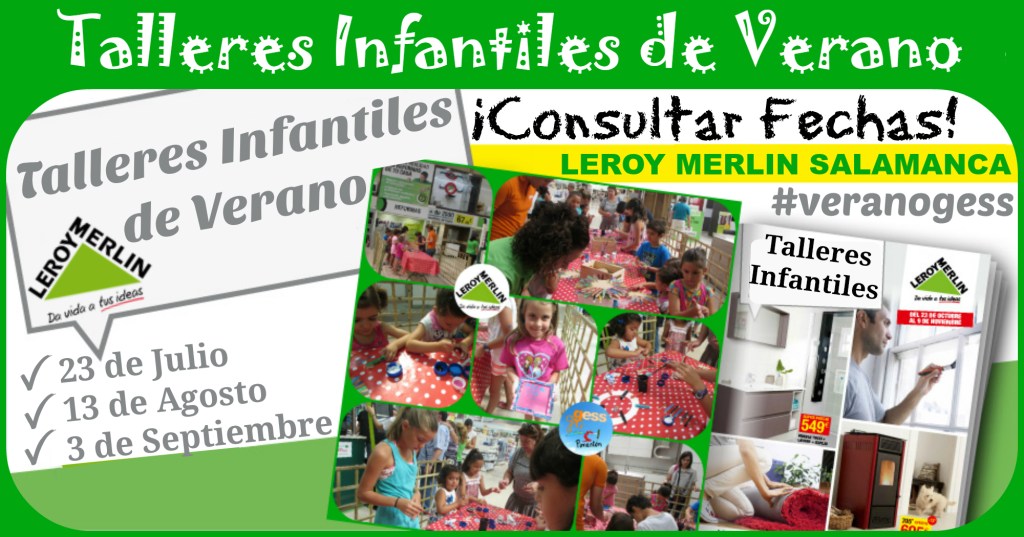 Llegó el verano pero en Leroy Merlin Salamanca, seguimos con los Talleres Infantiles para que los pequeños lo pasen en grande! ¡Toma nota! Los siguientes talleres serán: 23 de Julio: Día de los abuelos. En este taller los más pequeños podrán realizar unas fantásticas galletas de corazón para darles todo el cariño a los abuelitos.…